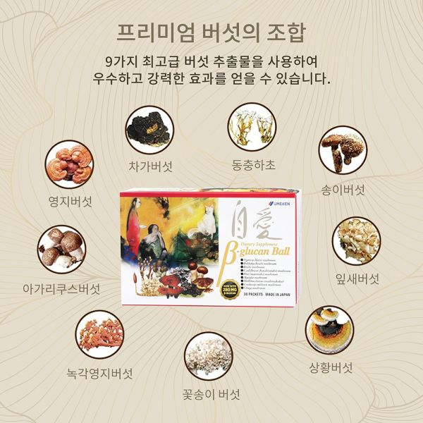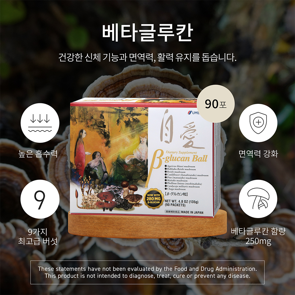 최고급 버섯에서 추출한 우메켄 베타글루칸의 강력한 효능이 정상적인 면역 체계에 도움을 줍니다.