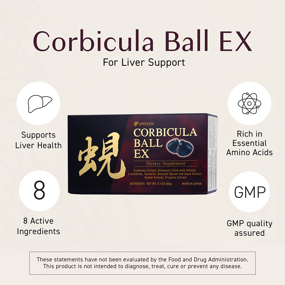 With 8 liver-friendly ingredients, Corbicula Ball EX helps support liver health and may help decrease fatigue.*