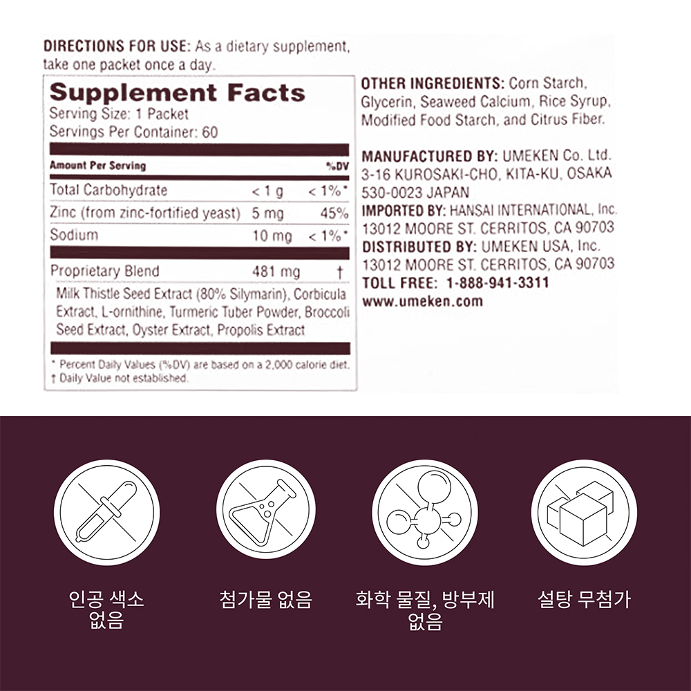 실리마린(밀크시쓸): 실리마린은 간 건강에 도움을 주는 활성 성분으로서 간 기능 개선에 효과가 있습니다.