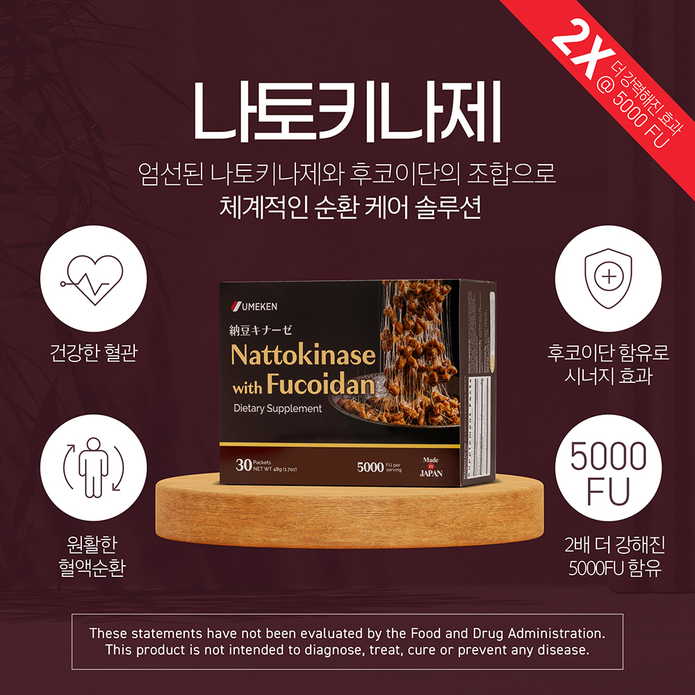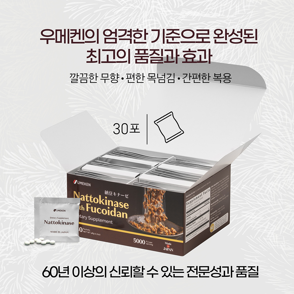 • 신제품 현재 5000FU (단위: 피브린)의 나토키나제가 함유되어 있습니다.