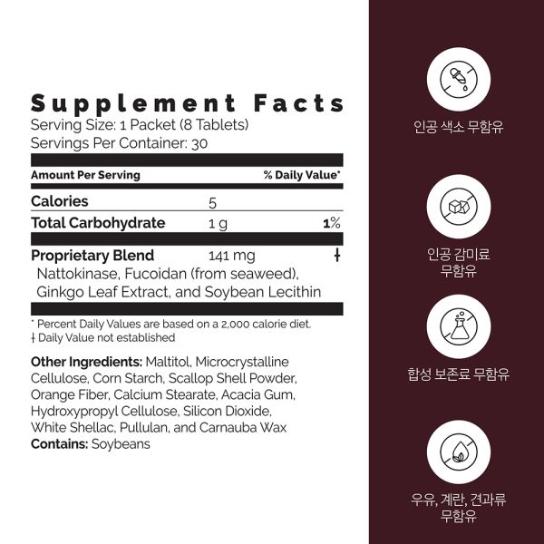 나토키나제: 건강한 순환계를 도와주며, 비타민 K 가 첨가 되지 않았습니다.[1]