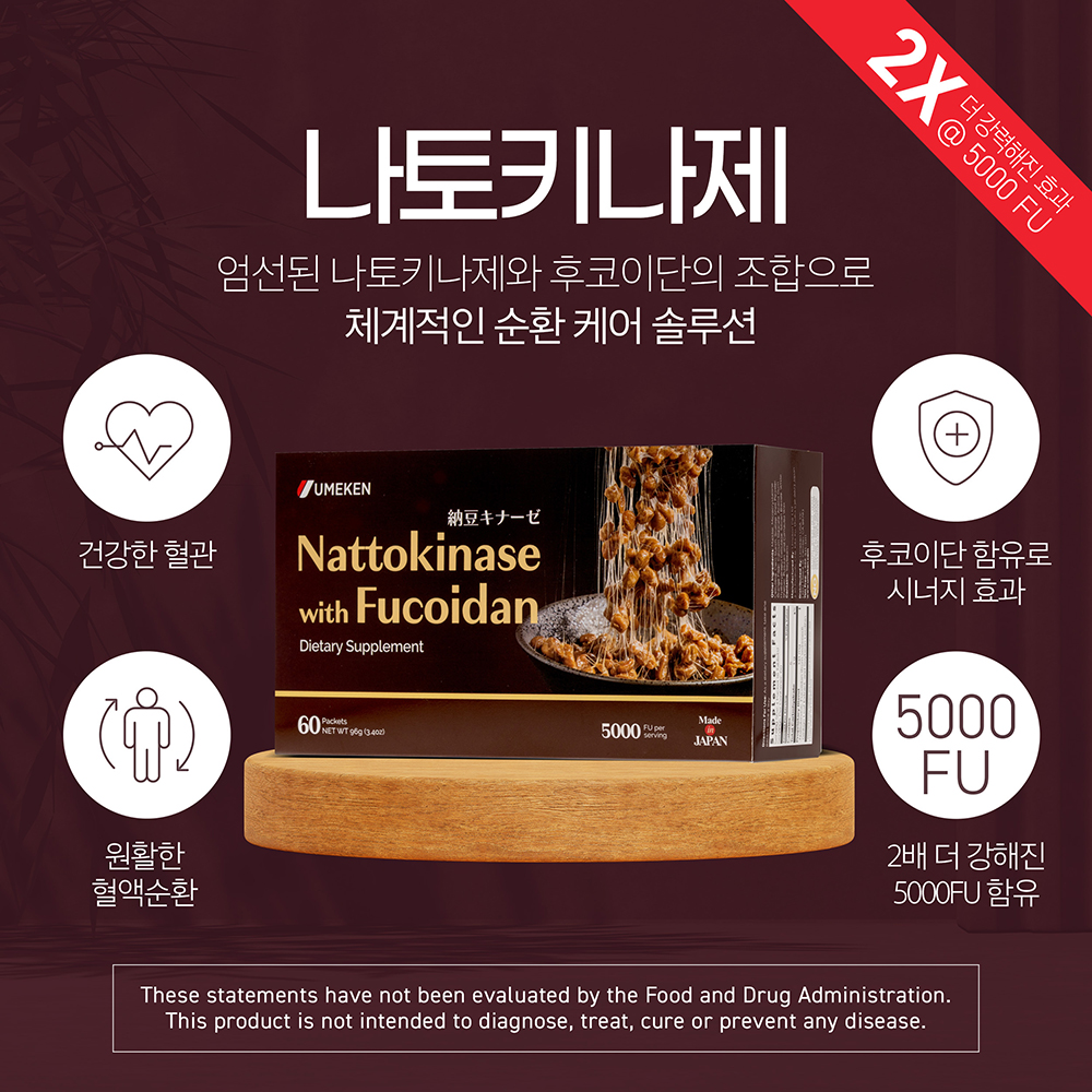 신제품 현재 5000FU (단위: 피브린)의 나토키나제가 함유되어 있습니다.