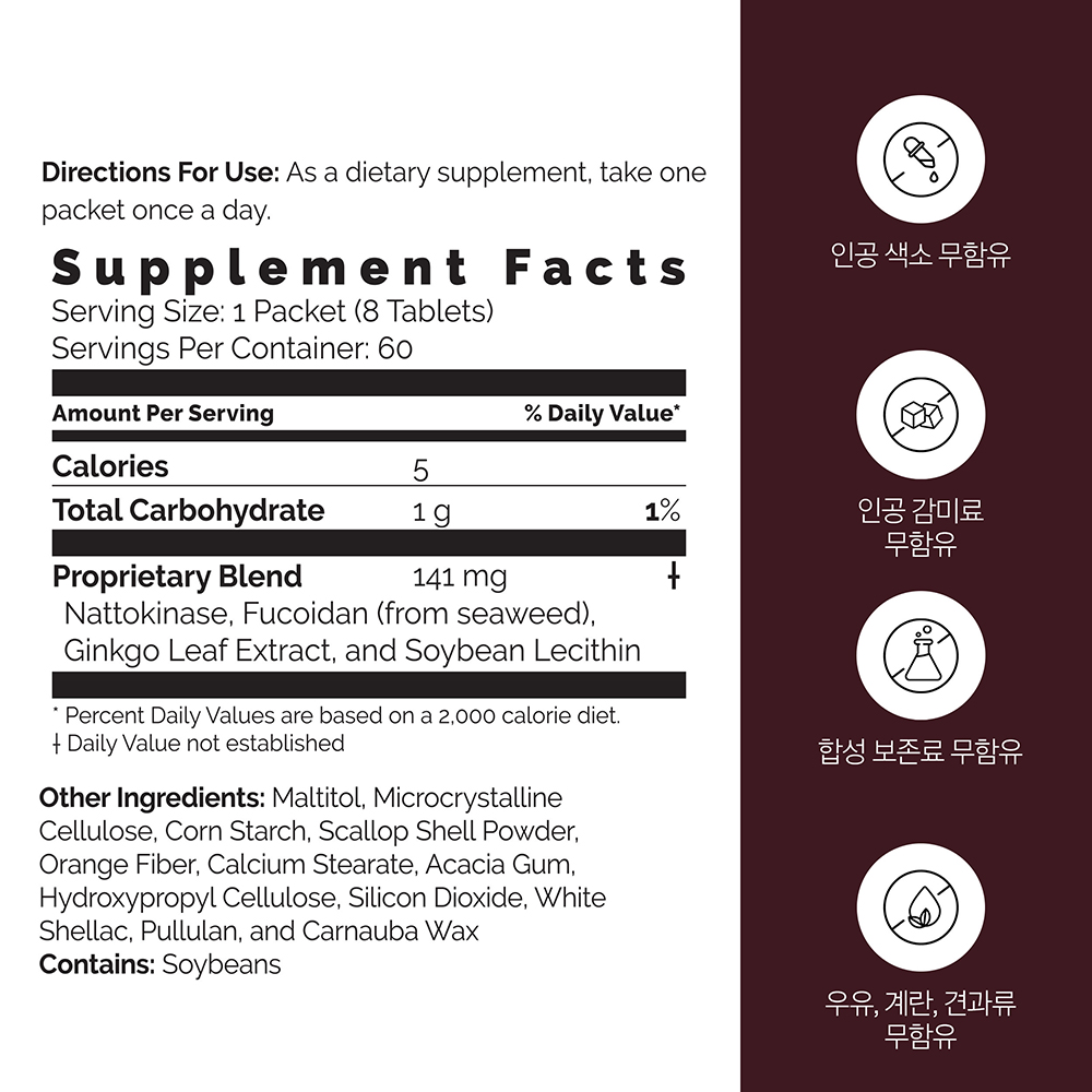 나토키나제: 건강한 순환계를 도와주며, 비타민 K 가 첨가 되지 않았습니다.[1]